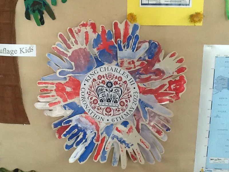 In line with our Coronation celebrations in school, we used red, white and blue paint to make handprints.